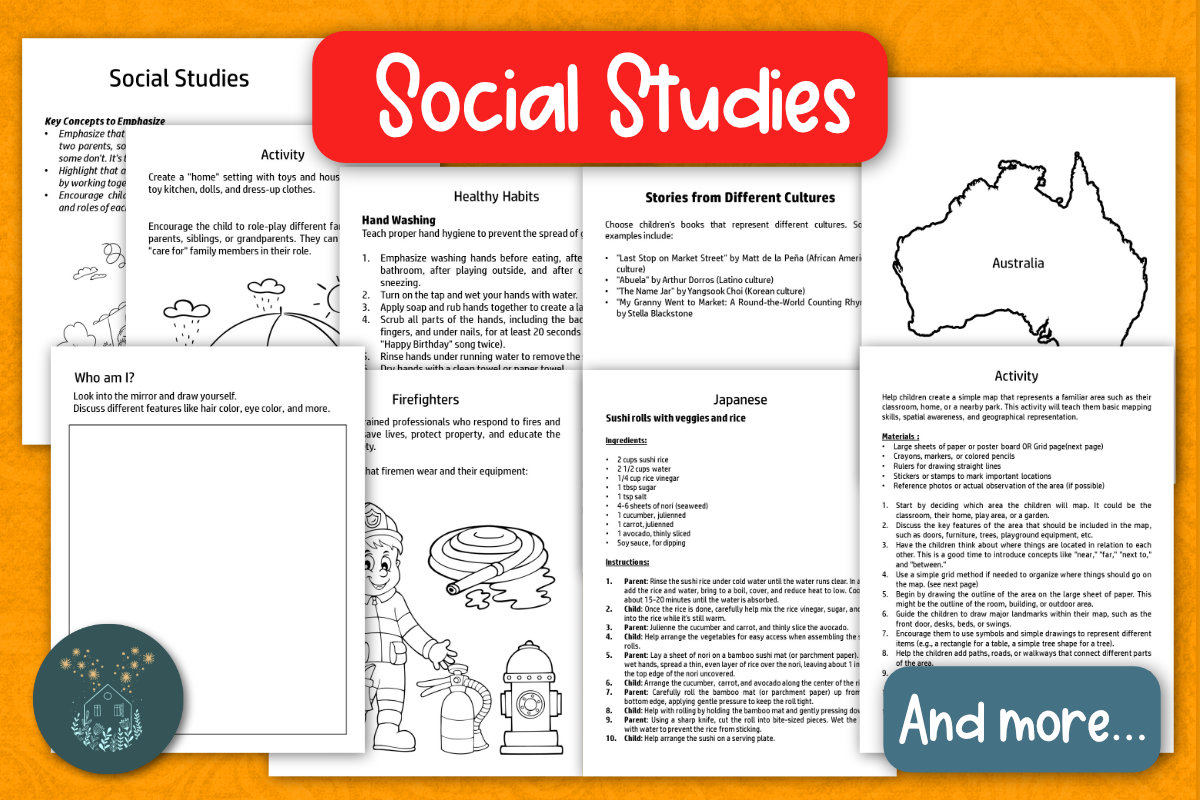 - Social Studies: Lessons on community helpers, states, local geography, and world cultures.
